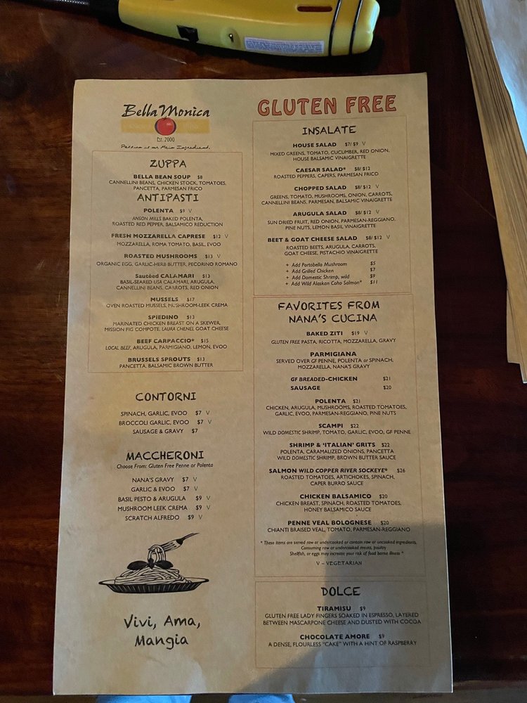 Bella Monica, a cozy Italian wine bar and pizza spot in Raleigh, NC, offers a diverse menu with plenty of vegetarian and gluten-free options. Customers rave about the flavorful antipasti, gluten-free frittata, and Portobello dish. The ambiance is described as personal and small, perfect for a casual evening out or a family gathering. The service is top-notch, with attentive staff and a great wine selection. Reviewers highlight the lasagna and spinach stuffed shells as must-try dishes. The restaurant's motto "viva, ama, mangia" (live, love, eat) reflects the Monica family's passion for delicious food and hospitality. The eclectic interior decor adds a fun touch to the dining experience, making Bella Monica a go-to spot for delicious Italian fare in Raleigh.