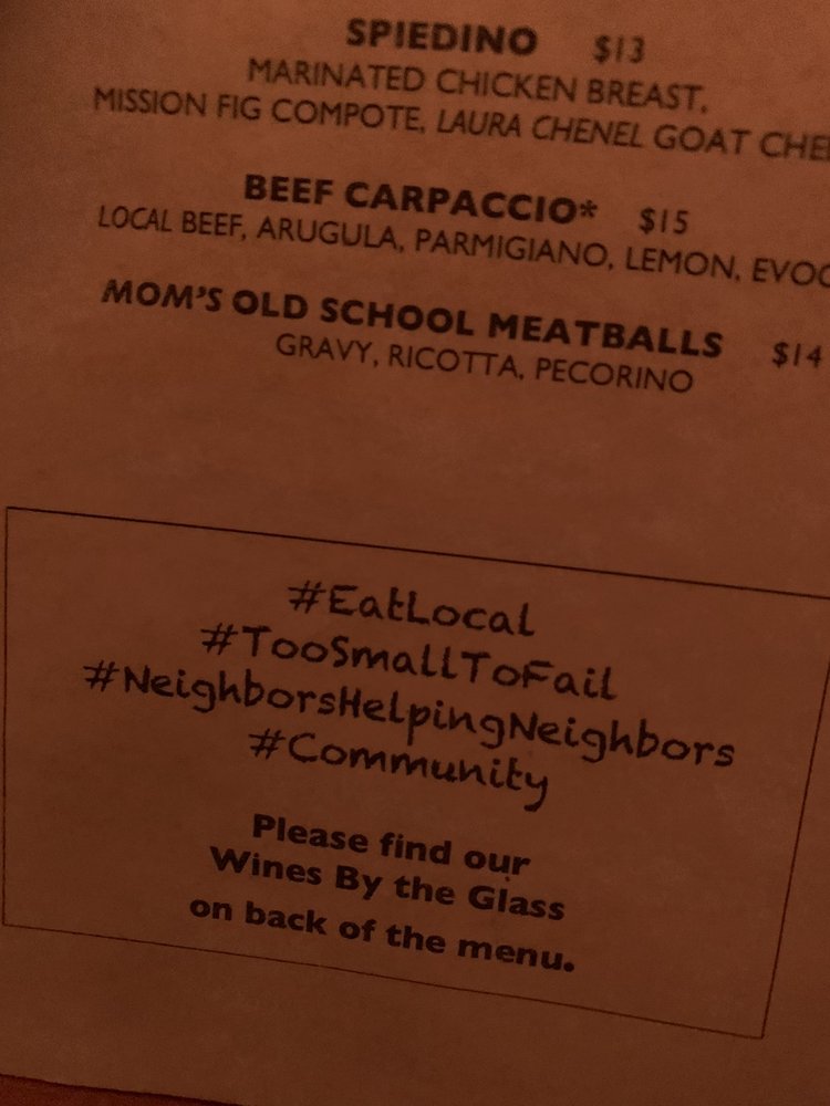 Local beef, parmesan reggiano, California EVOO, arugula, lemon, fresh cracked pepper.